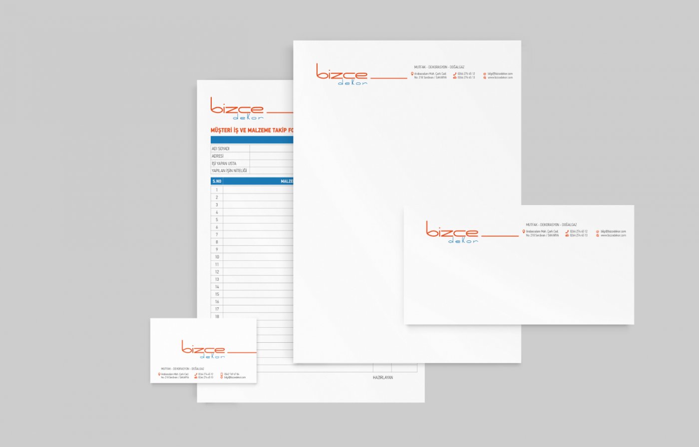 Bizce Dekor Kurumsal Kimlik Tasarımı Bizce Dekor için yeni bir konsept oluşturulup kurumsal kimlik tasarımı hazırlandı.